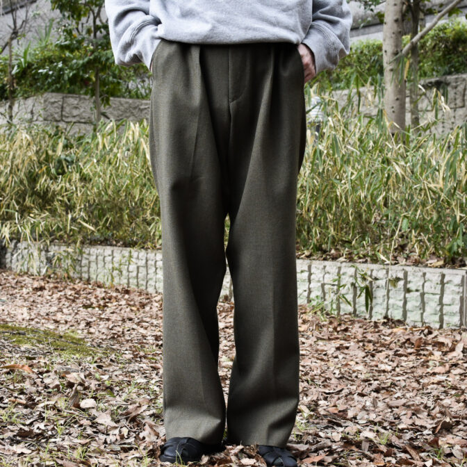 ぱっと見はカーキ一色ですが実はオレンジも入り混じっているアースカラーが絶妙なパンツ。