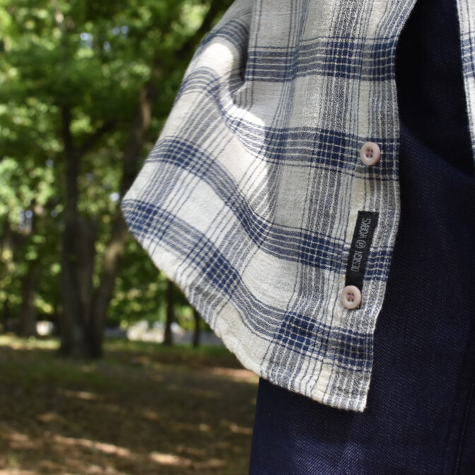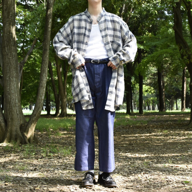 クリーム色が入っており、全体がパキッとしすぎていないので古着特有の味のある色味が特徴のアイテム。