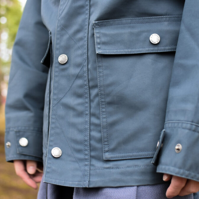 生地はシャリ感が特徴で清涼感があるので春先のライトアウターとして重宝するアイテム。