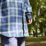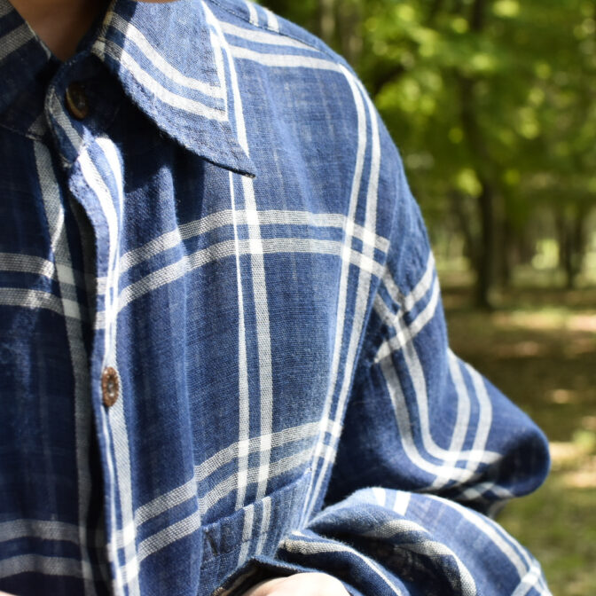 表面に裏地の細かいチェックが上品に見えることで立体的な色味が表現されている。