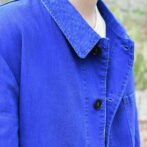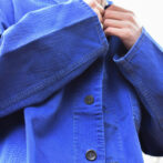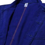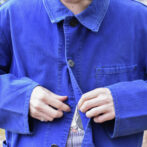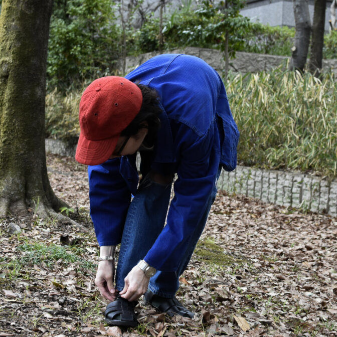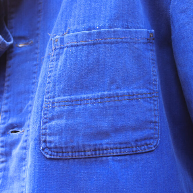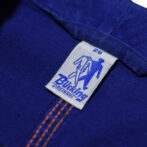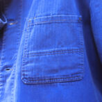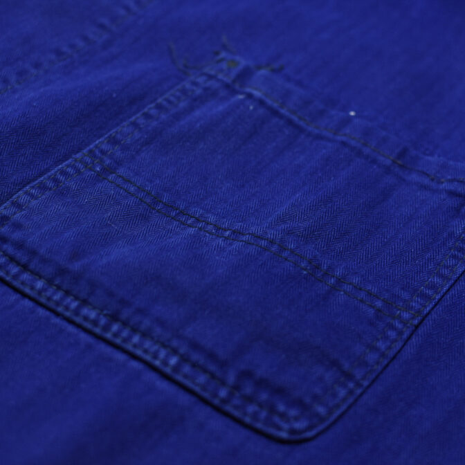 裏地に入っているオレンジ色のステッチがフレンチブルーに映えて目を惹く。