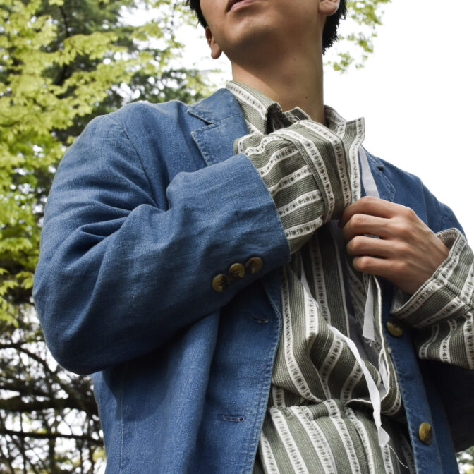 生地表面の独特な質感やシワがカジュアルでこなれた印象を演出する。