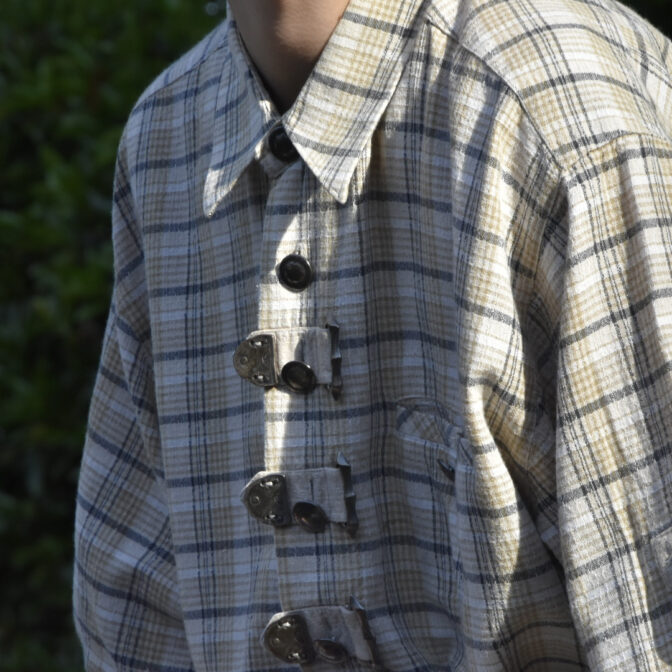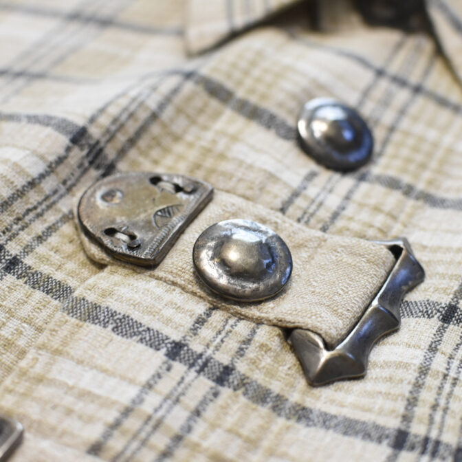 重厚感のあるメタルボタンが詰まった間隔で配置されているのが特徴。