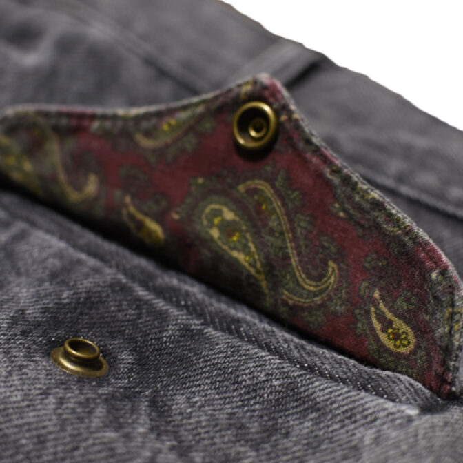 腰回りやポケット裏地がペイズリー柄になっており、見えない部分のデザインに気分が高揚します。