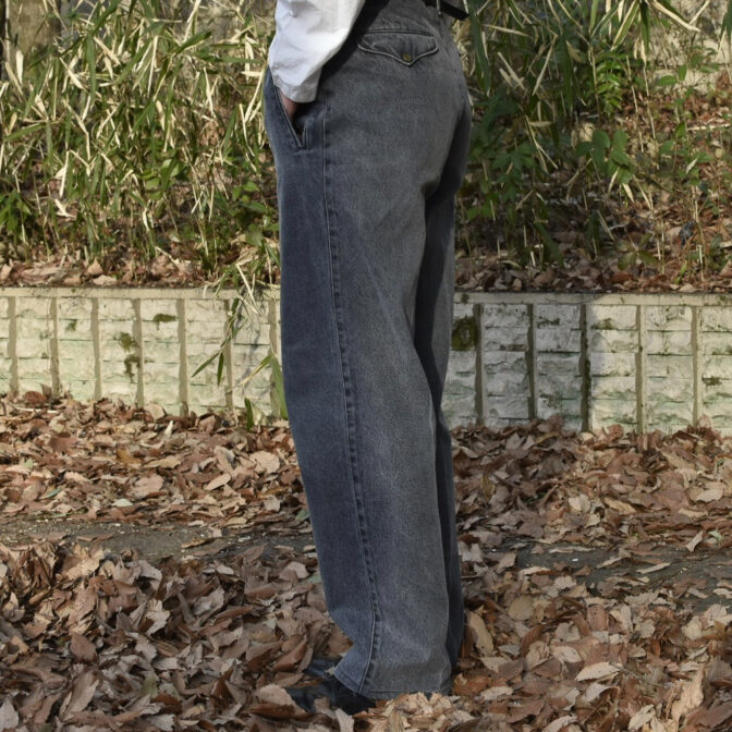 また股ぐり部分を通常のデニムとは違いトラウザーパンツのようなすっきりとしたきれい目なボトム近い作りのため
