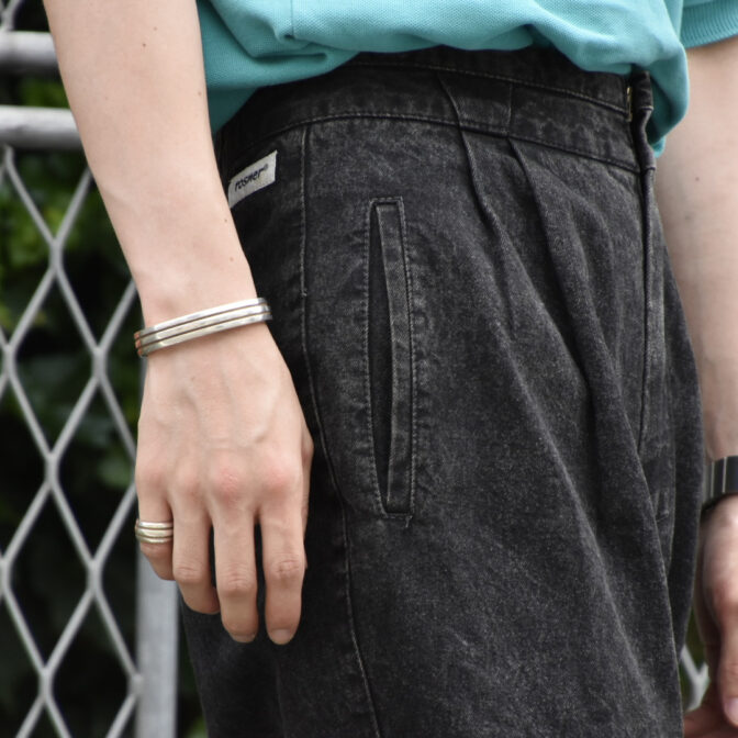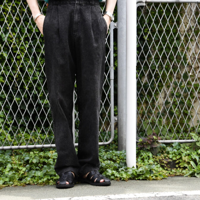 ハイウエストでほどよいテーパードシルエットが特徴。
