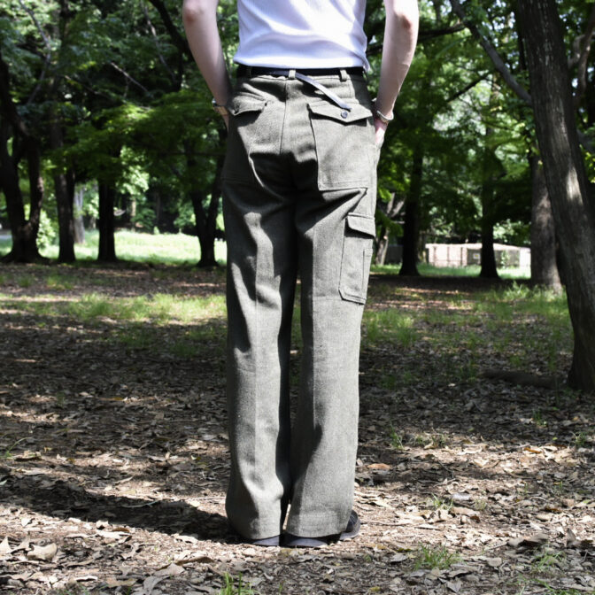 カーゴパンツの野暮ったさがフレアシルエットになっていることでドレスライクにも着用して頂けます。