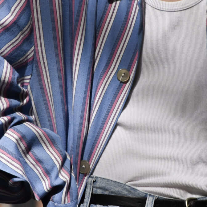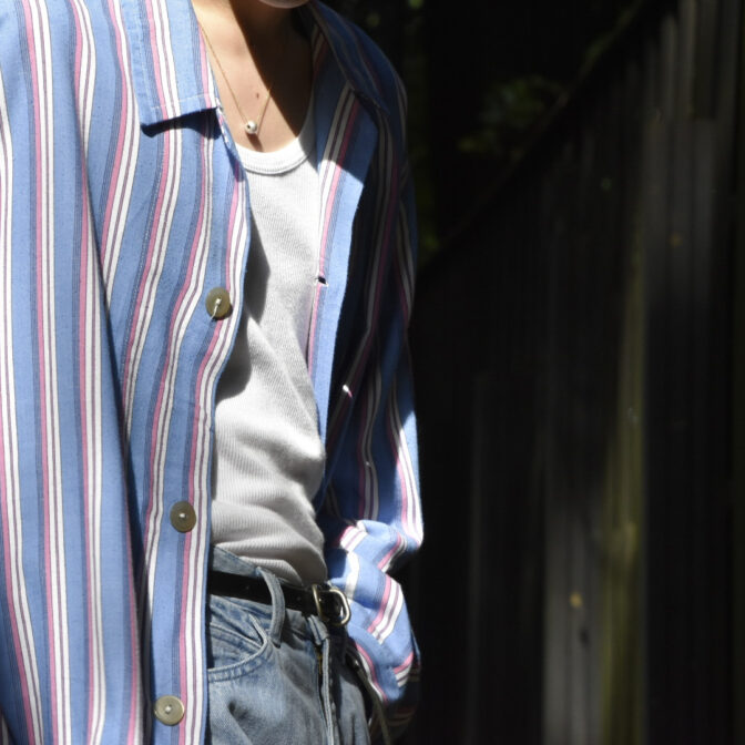 シルエットは身幅にゆとりがあるのでストレスなくサラッと羽織れる1着です。