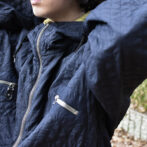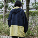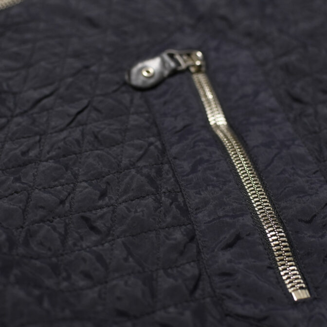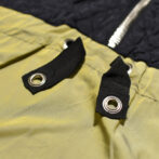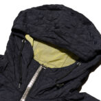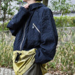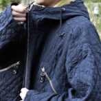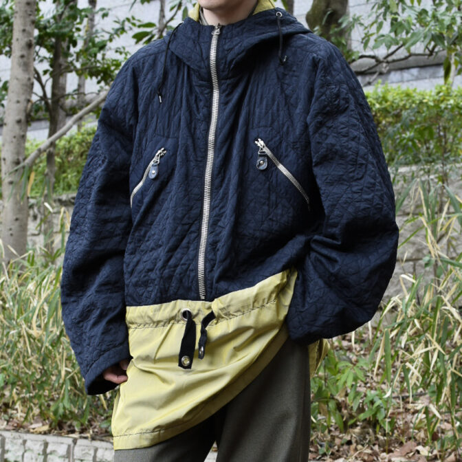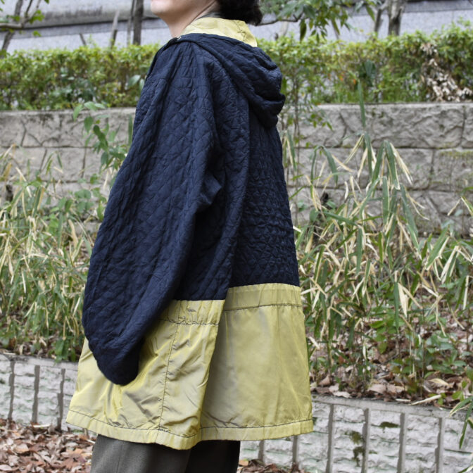 キルティングが裾にかけて玉虫色の生地に切り替わったデザインや腰元がドローコードが特徴。