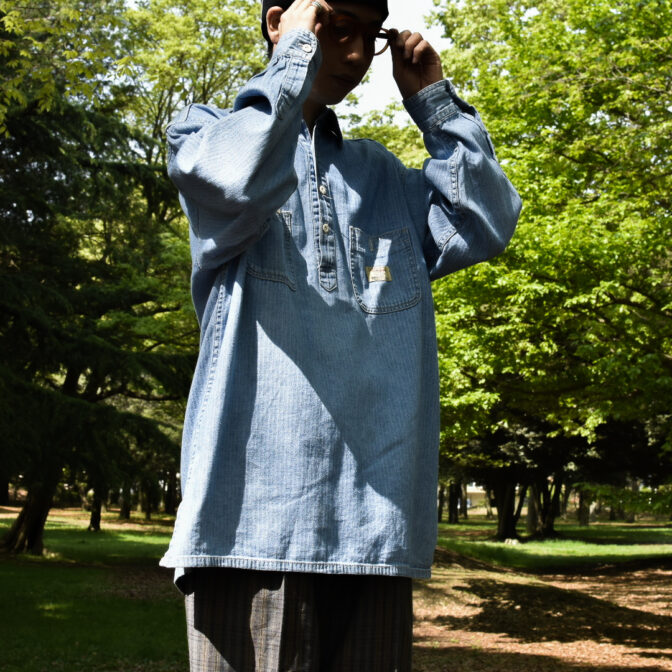 デザインはグランパシャツのようになっておりプルオーバー故の良さがあります。