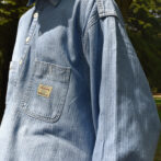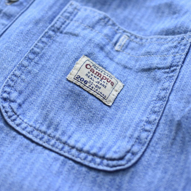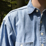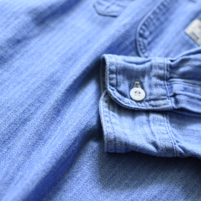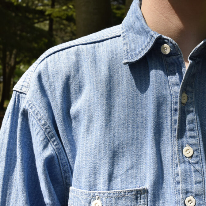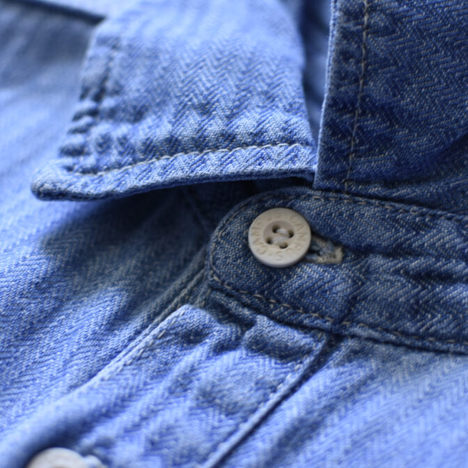 ヘリンボーンのデニム生地特有の光沢感も魅力のアイテム。
