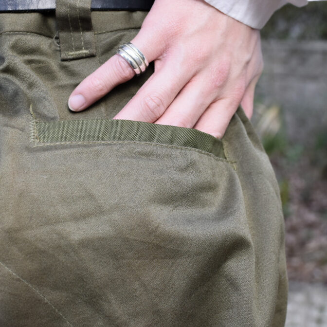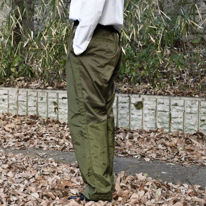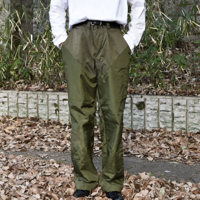 肉厚なコットンとナイロンの異素材なドッキングが特徴的なハンティングパンツ。
