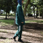 トラックパンツやハーフパンツでカジュアルダウンさせるのがおすすめです。
